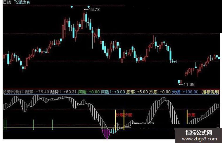 抄底: IF(CROSS(趋势,底部),60,0),LINETHICK2,STICK,COLOR00FFFF;