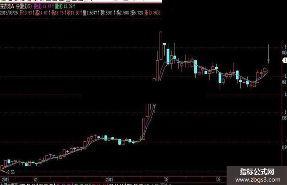 此源码为通用源码,参数N为可调试,研判趋势N的取值较大为好,短线买卖N的取值最好小于7;特别是对牛股把握卖点比较好。也可以按此方法做成取固定值的若干均线。 快线:ema(C,n),COLORMAGENTA; 慢线:(MA(c,n)+sma(C,(n-1),1))/2,COLORGREEN;