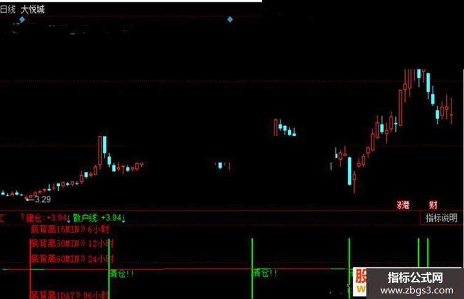 DRAWTEXT (底背离,主力操盘线-20,'底背离1DAY》96小时'),COLORRED;