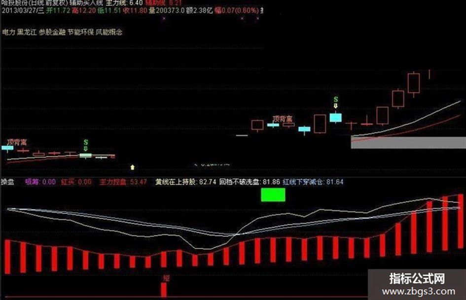 ,黄线在 回档不破洗盘、红线下穿减仓两线之上持股,下穿减仓,还有主力控盘资金进入的大小及控盘程度。