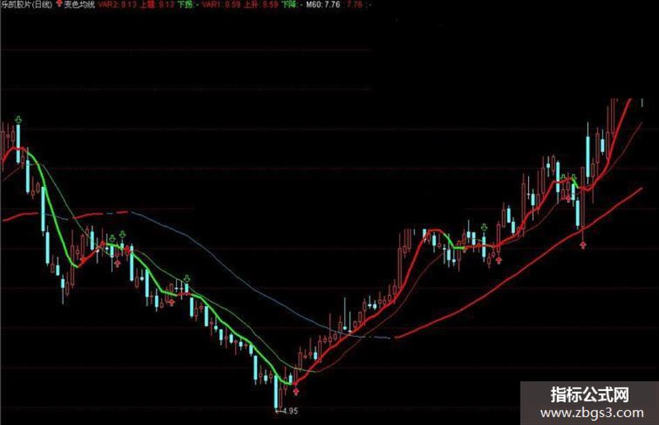 下拐:IF(VAR2<REF(VAR2,1),VAR2,DRAWNULL),COLORGREEN,LINETHICK3;