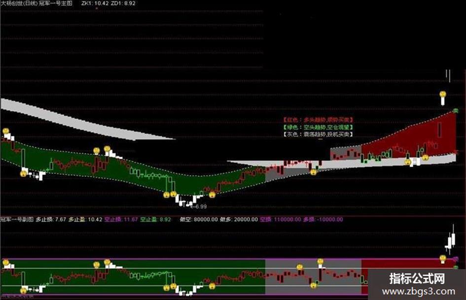 DRAWTEXT(1=1 AND CURRBARSCOUNT=50,绿色线,'【绿色:空头趋势,空仓观望】'),COLORGREEN;