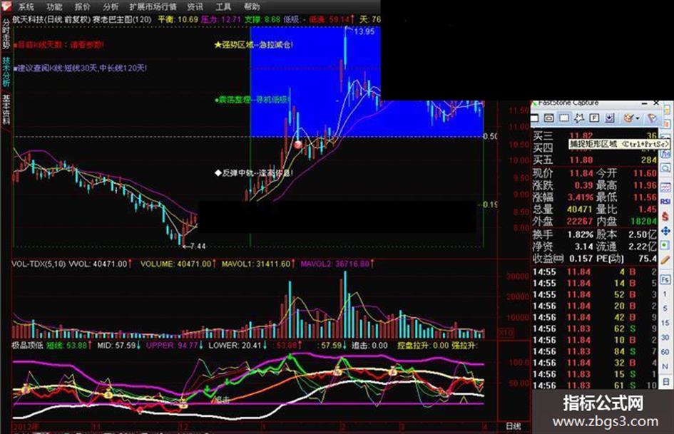 2、指标设计:【赛老巴主图】即是将主图所见全部K线,以坐标形式,自动分为上下左右四个部分;右侧