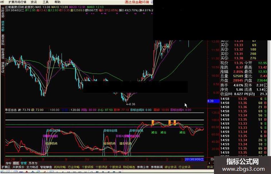 DRAWTEXT(CROSS(股海,90) AND (股神<40),75,'目标B出现'),COLORFFFF00;