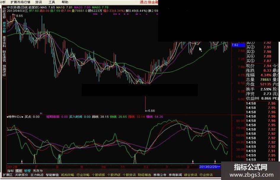 慢线:SMA(K,5,1),COLORMAGENTA;
