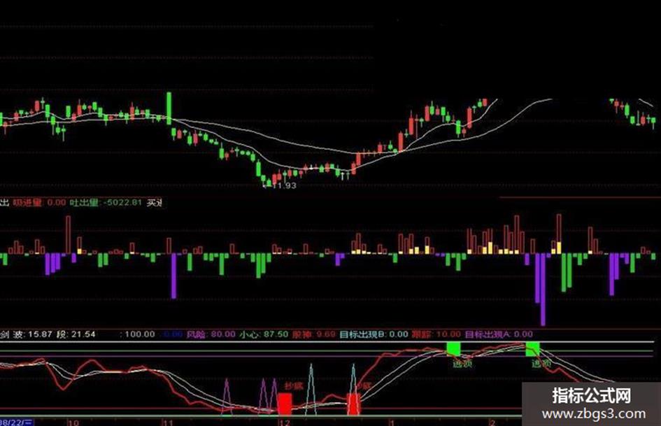 目标出现A:IF((COUNT((股神>REF(股神,1)),1)=1) AND (REF(股神,1)<REF(REF(股神,1),1)) AND (股神<跟踪),50,0),COLORF00FF0;