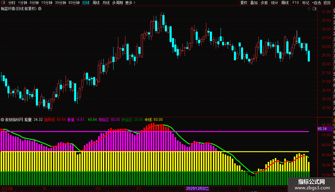 STICKLINE(能量>20 AND 能量<50,20,能量,2,0),COLORYELLOW;