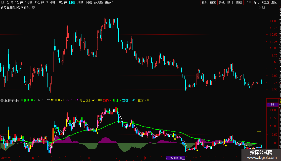 1. 多周期均线系统:显示5日、10日、20日均线及一条30日与72日组合的“牛熊线”,用于判断不同级别的趋势方向。