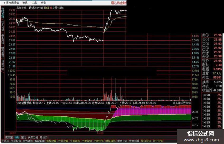 指标中的绿柱是调整,粉红柱是强势上涨!