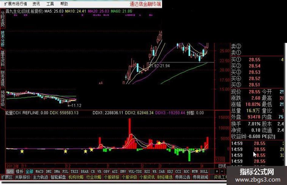 预警:DDX>0 AND MA(V,5)>MA(MA(V,5),5) AND CROSS(DDX1,DDX2),LINETHICK;