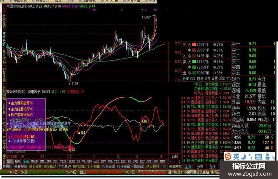 DRAWTEXT(TJ,主流资金*0.96,'▲换!'),COLORYELLOW,LINETHICK3;
