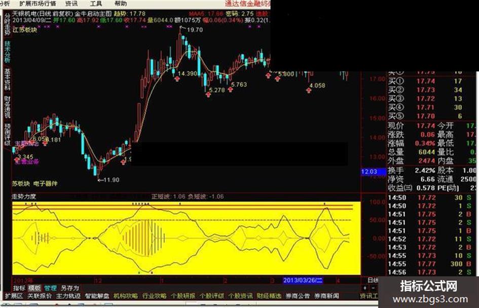 此指标采用三级体系,对走势力度进行全方位的镜像。不仅如此,其完美的指标画面,清晰而不繁杂的让人不知所措,并且适用所有的股软。如图: