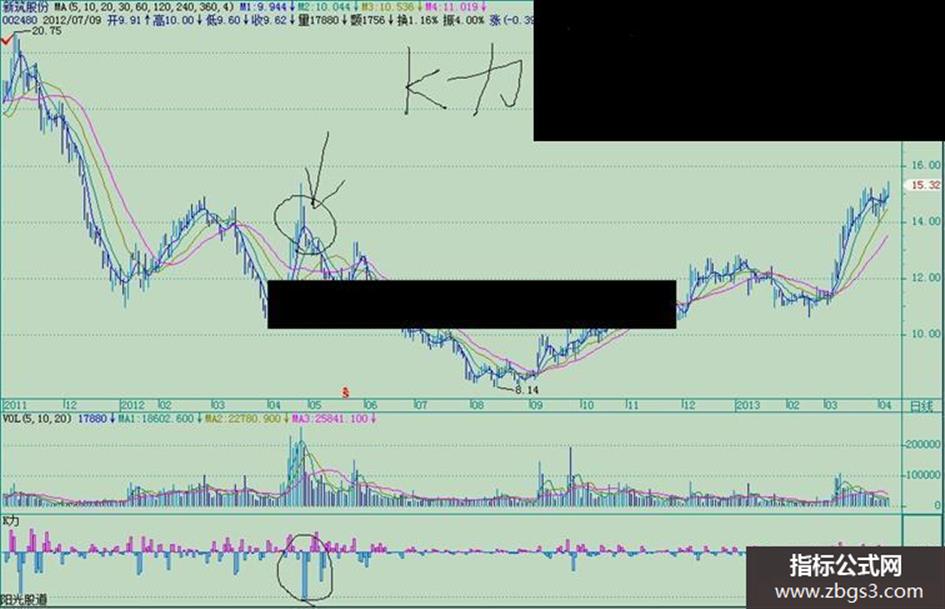 资金流出往下打,就好像有一股力道往下砸.称为阴k力;