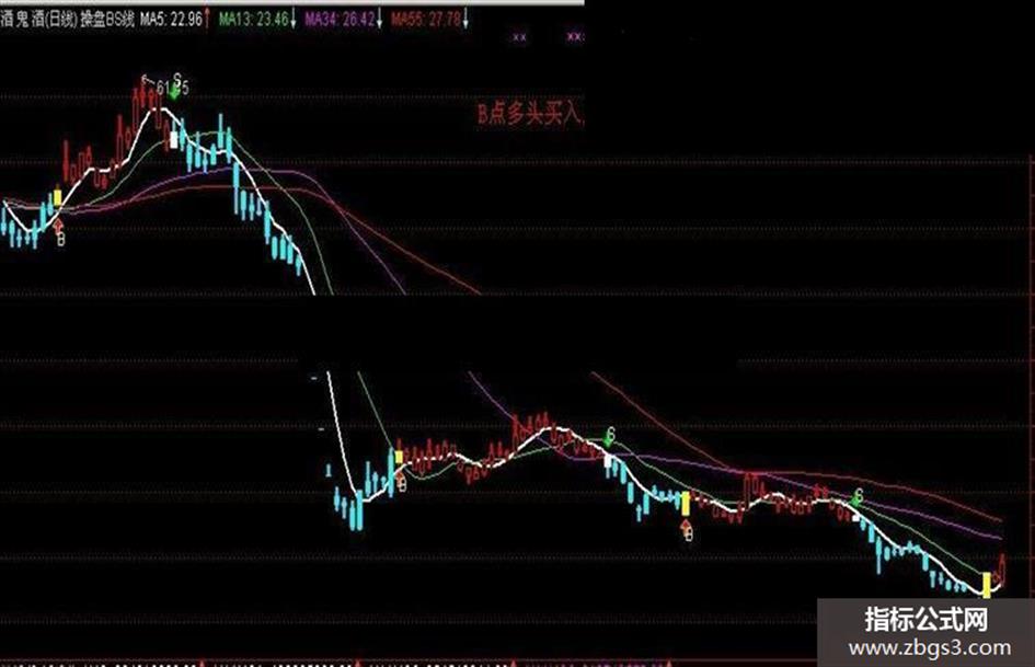 结合网上指标,自己修改的主图指标,给有需要的同学。 B点多头买入,S点空头卖出,顺势操作,及时止损,方能在市场中生存! 操盘BS线.tne