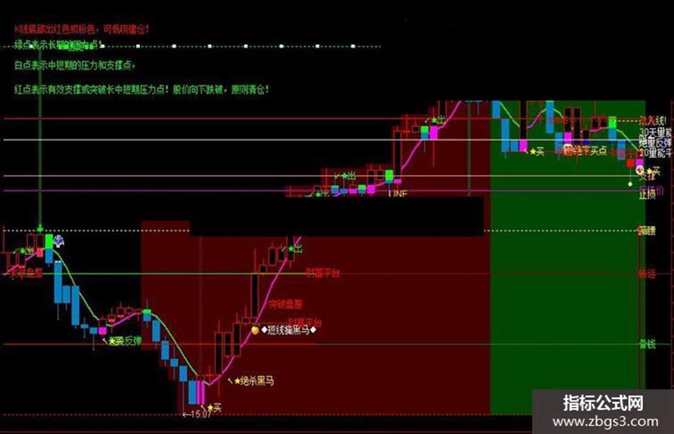 DRAWTEXT_FIX(CURRBARSCOUNT=1,0.02,0.16,0,'红点表示有效支撑或突破长中短期压力点!股价向下跌破,原则清仓!'),COLORGREEN;