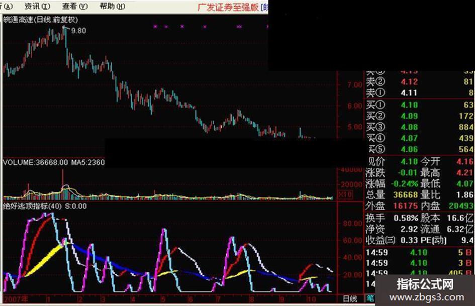 2.股票下跌连续出现青色柱线,在青色柱线没跌到底线消失之前不要急于抄底(个别情况例外),要经过几个交易日或者更长时间才能出现转机,这时再择机介入(用这个指标查看一下历史走势就能发现规律).