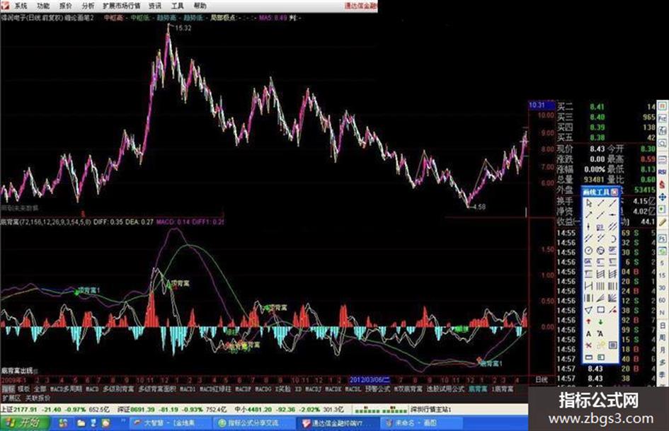 用法如下:1.MACD黄白线顶,底背离.