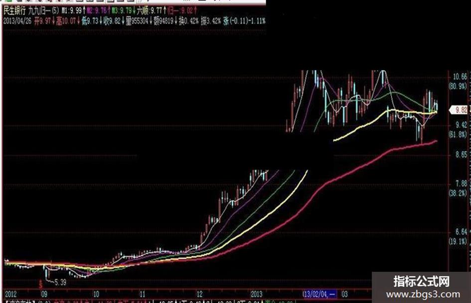 此源码为通用源码,三条细线为短期均线,可根据本人帖子指标公式及其它的原理按照三线粘合度操作,六顺线为中线趋势线,归一线为长期趋势线