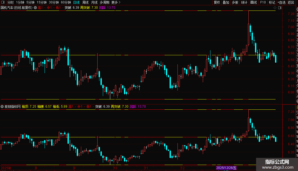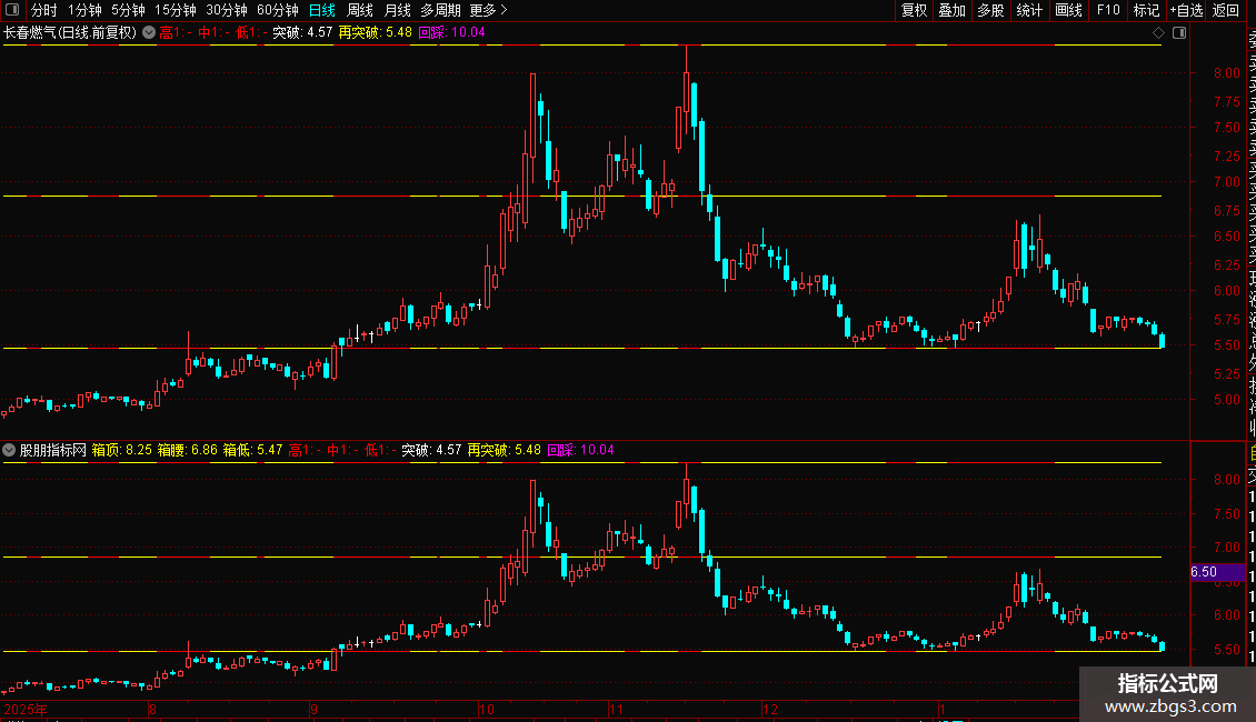 3. 特殊价位标记:根据收盘价自动计算并标记“突破”、“再突破”、“回踩”三个关键参考价位,用于观察价格对特定整数关口或结构位的测试行为。