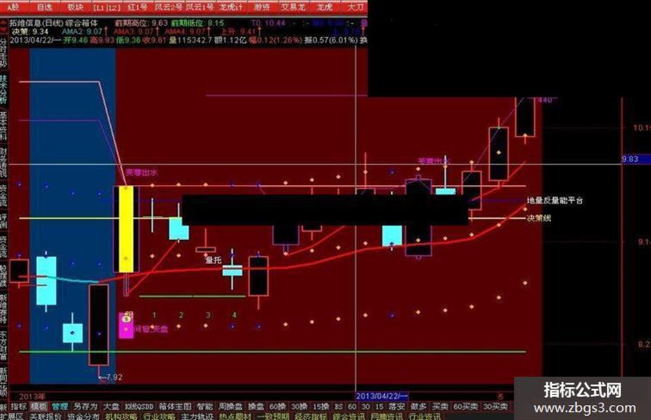 上升:=IF(红轨道>=绿轨道,绿轨道,DRAWNULL),COLORRED,LINETHICK2;