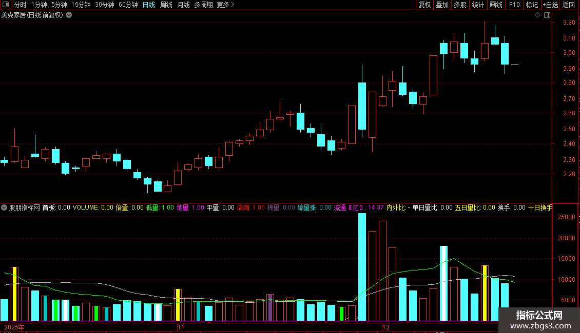 单日量比:V/REF(V,1),COLORWHITE,NODRAW;