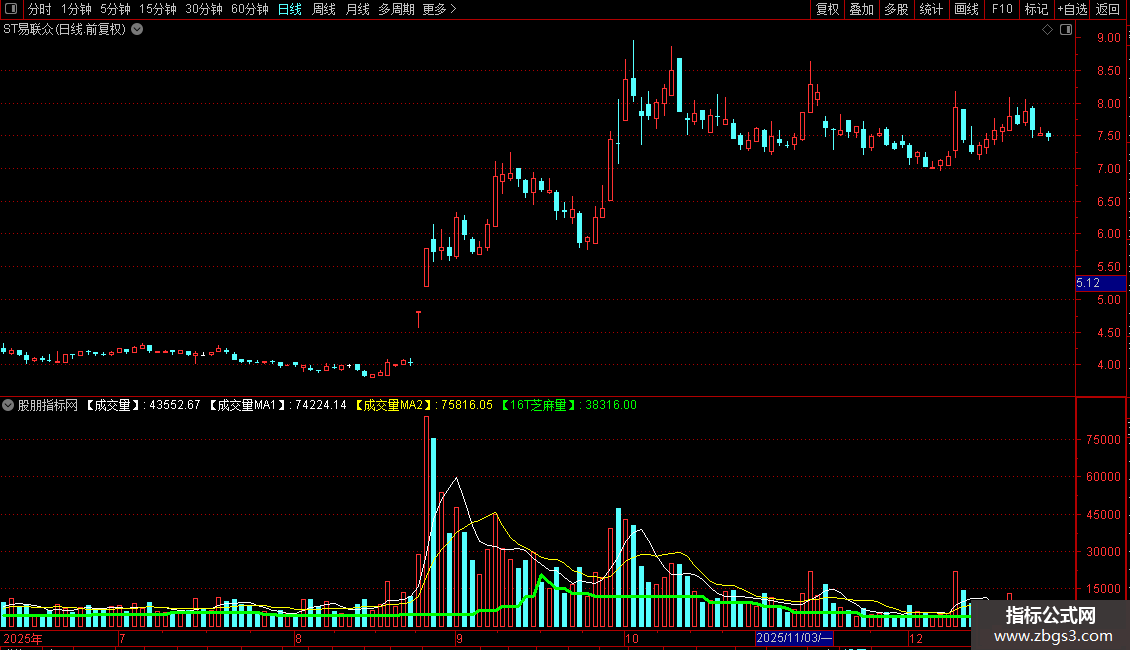 量能萎缩确认:当当日成交量接近或低于这条绿色ZM线时,表明市场交易极度清淡,成交量萎缩至近期(16个交易日周期内)的极低水平,可能预示着变盘节点或底部区域。