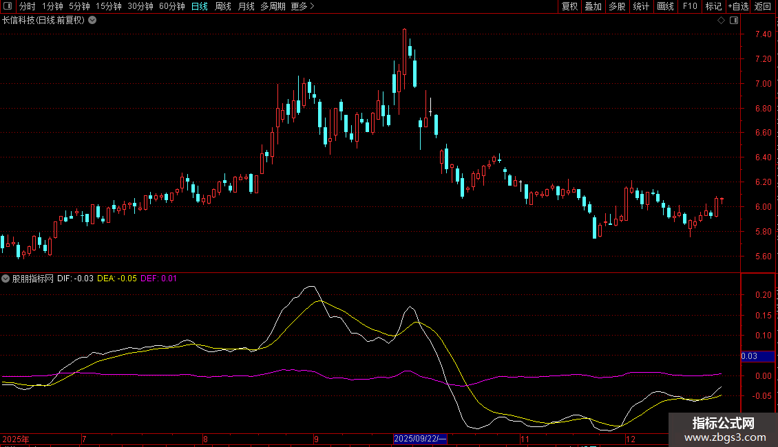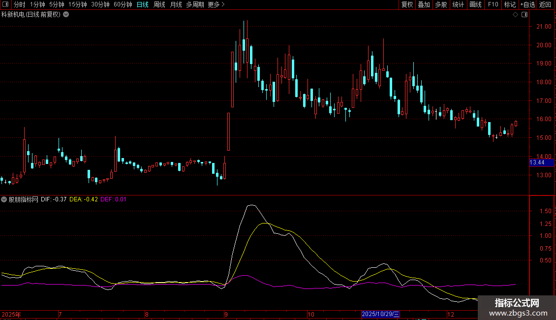 该指标在`DEF`(即DEA的当日差值)等于0时,判断DEA线走平钝化。