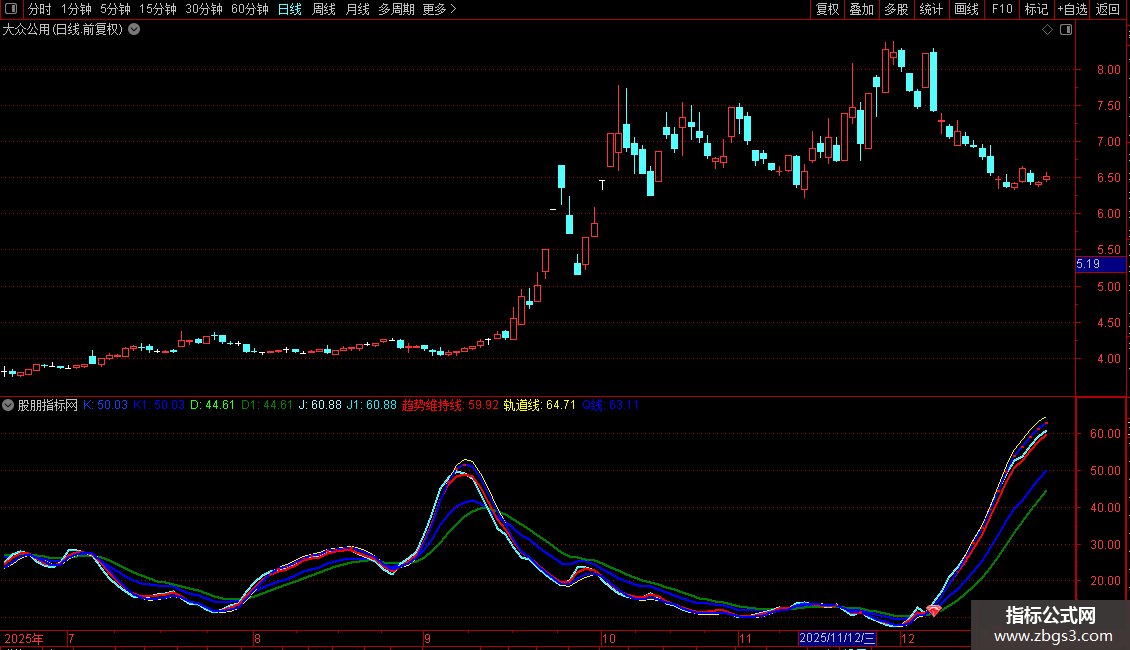 轨道线:(J+REF(J,1)+REF(J,2)+REF(J,3))/4*(K/D) COLORYELLOW;