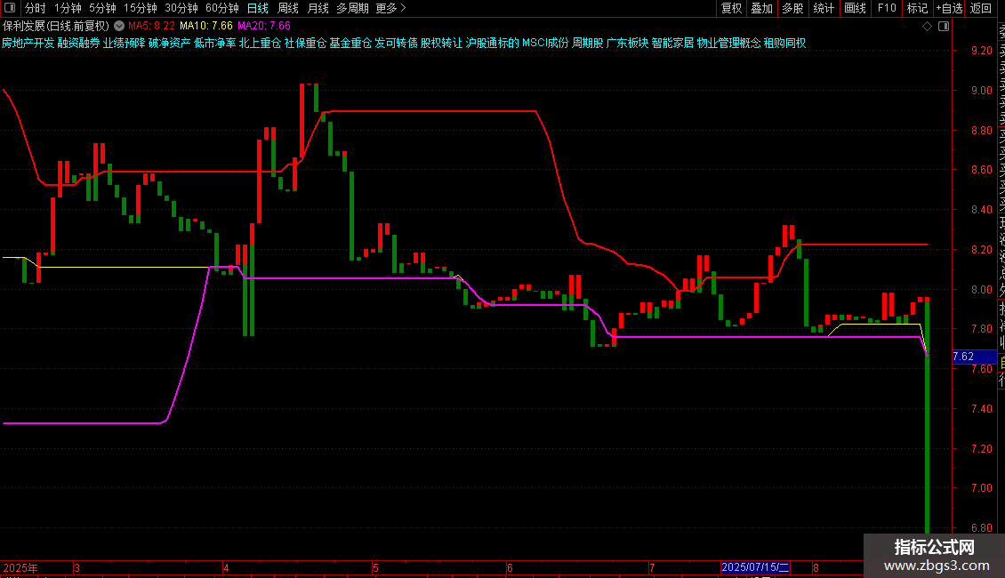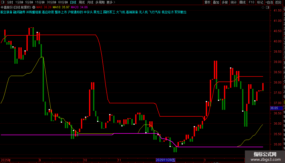 指标底部会显示股票所属的行业、地域、概念等板块信息。