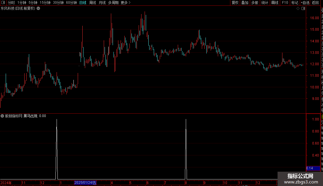主信号为“黑马出现”。副图绘制了两条CCI曲线(CC1和CC2)供参考。