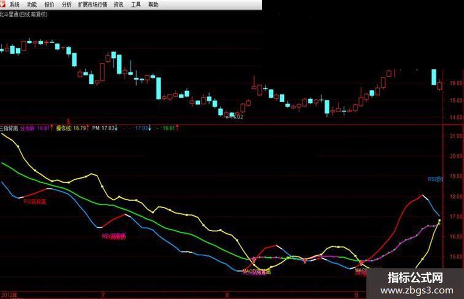 DRAWTEXT(B3> 0,L-0.18,'RSI底背离'),COLOR0000FF;{RSI底背离}