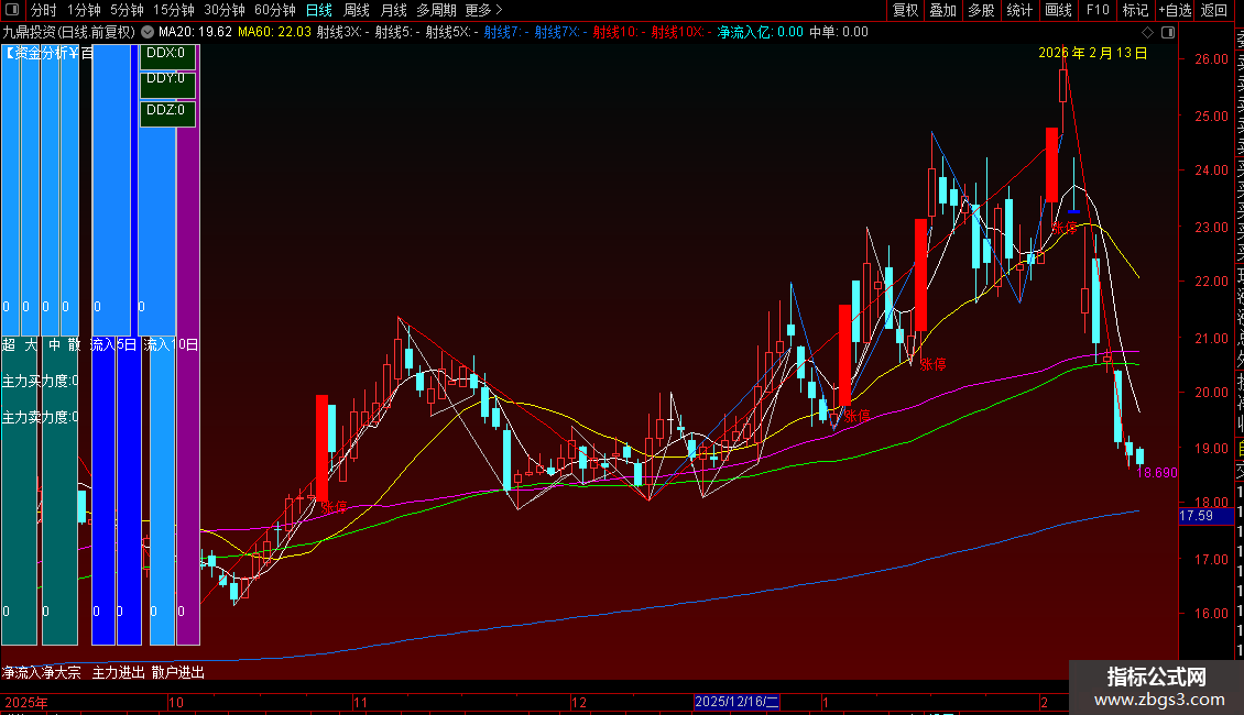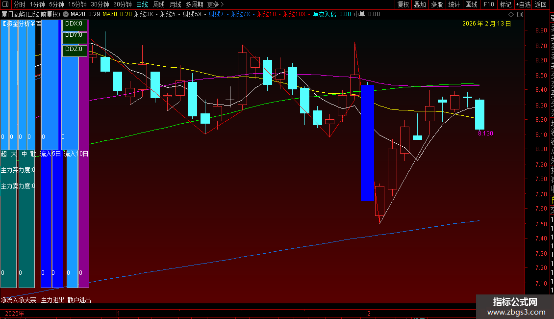 指标集成:显示DDX、DDY、DDZ及主力买卖力度。