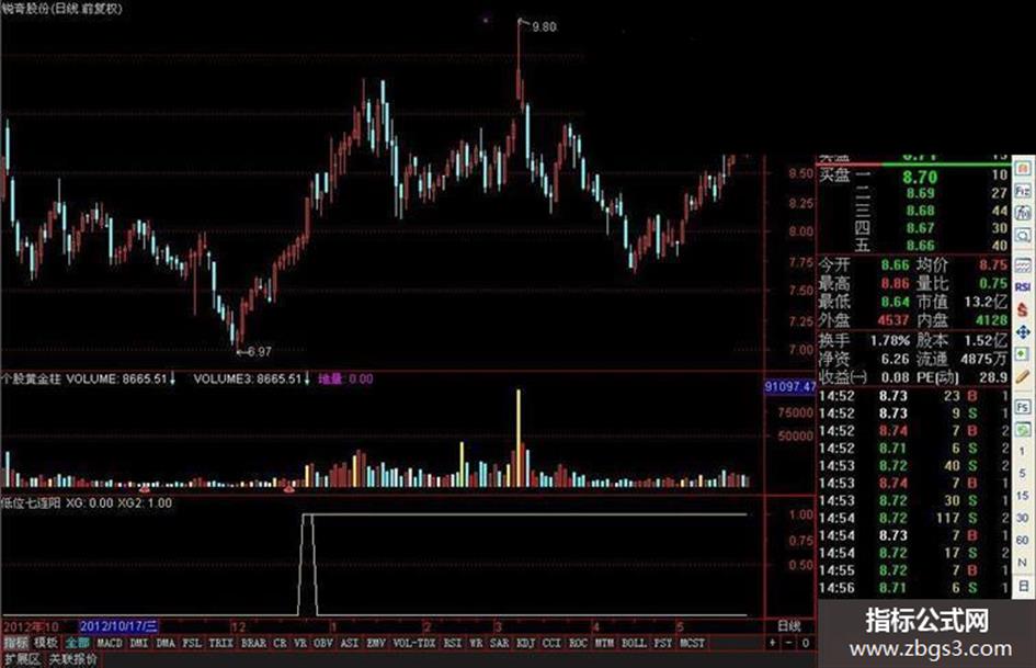 低位七连阳介入时机选择七连阳之后的缩量回调,等再次放量的时候就是介入该股的最佳时机