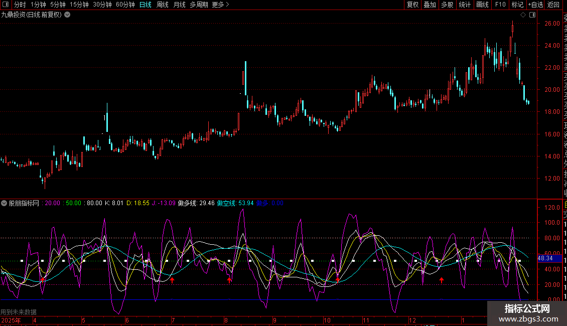 3. 动量确认:整合了标准的KDJ指标(K、D、J线),用于衡量价格动量和寻找背离。