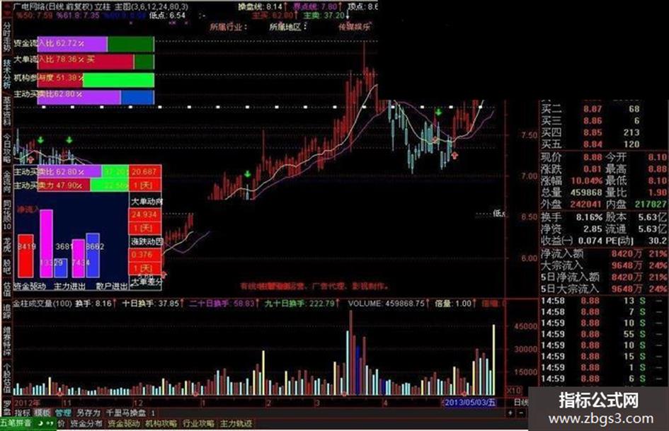 大单流入限制:=IF((超B+大B+超S+大S)=0,0,大单流入);
