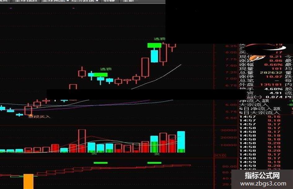 DRAWTEXT(CROSS(天线,多方趋势),H*1.04,'逃顶'),COLOR00FF00;