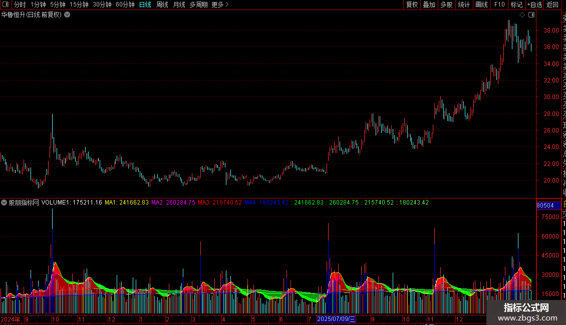 STICKLINE(CURRBARSCOUNT=1 AND PERIOD=5,VVOL,0,-1,-1),COLOR00C0C0;