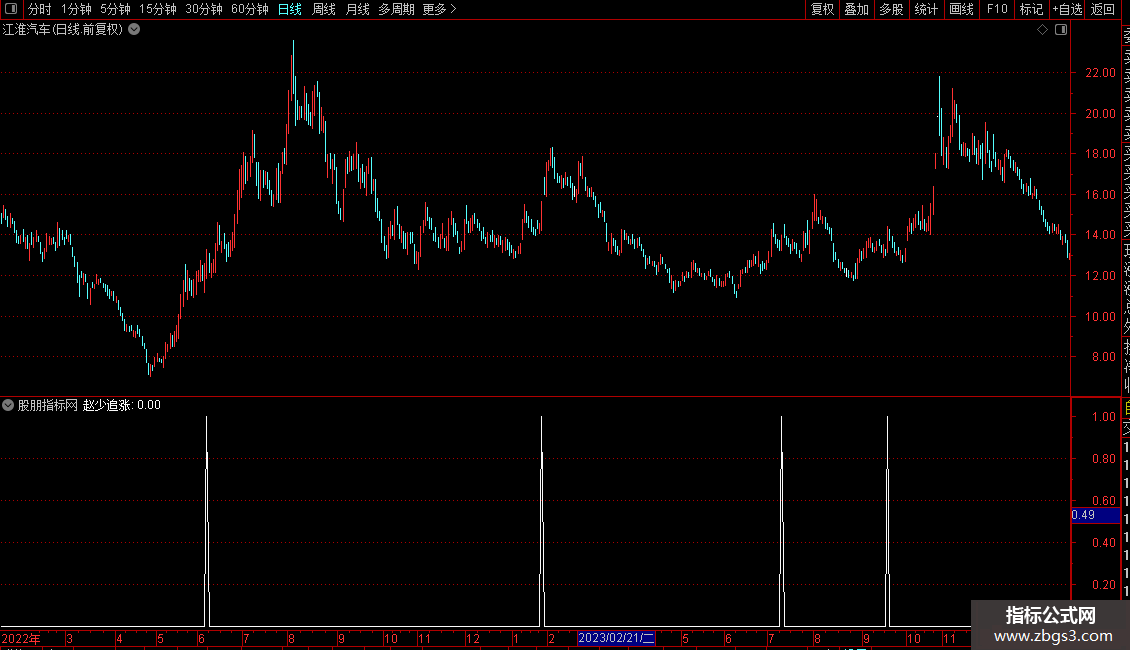 DO:=(CLOSE-REF(CLOSE,1))/REF(CLOSE,1);DP:=DO>0.04;DJ:=DO>0.049 AND (AJ OR AL>2);