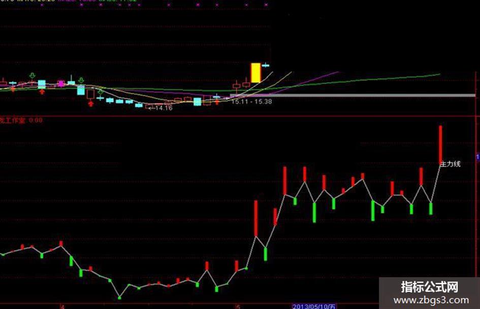 STICKLINE(DT<0,主力持仓线+DT,主力持仓线,0.5,0),COLOR00FF00;
