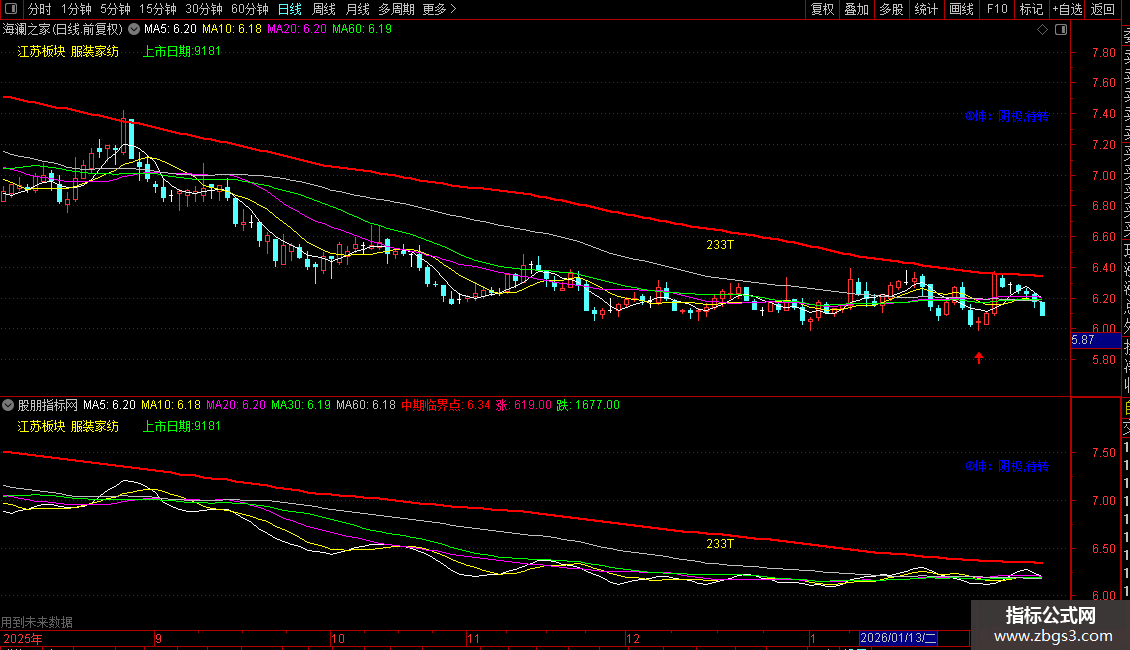 DRAWTEXT_FIX(REF(C,2)>REF(O,2)&&REF(C,1)>REF(O,1)&&C>O&&Z,0.98,0.2,1,'①乾:阳极,防变'),COLORFF00FF;