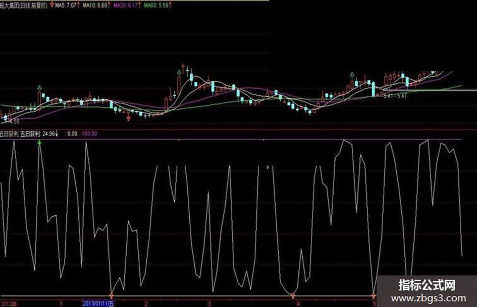 五日获利:LWINNER(5,C)*100; DRAWICON(五日获利>99.9,100,2); DRAWICON(五日获利<1,0,1); 0;100;
