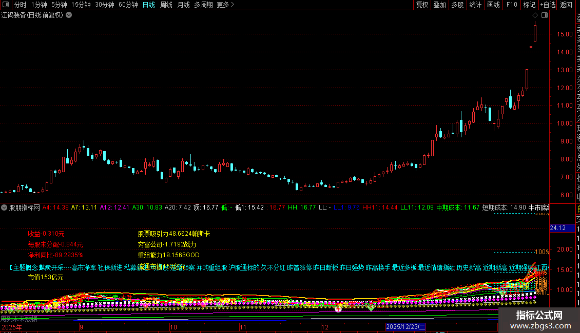 四:=SUMBARS(VOL,CAPITAL/5),NODRAW; 二:=SUMBARS(VOL,CAPITAL/1.3),NODRAW; 中期成本:MA(C,二),NODRAW{中期成本均线};