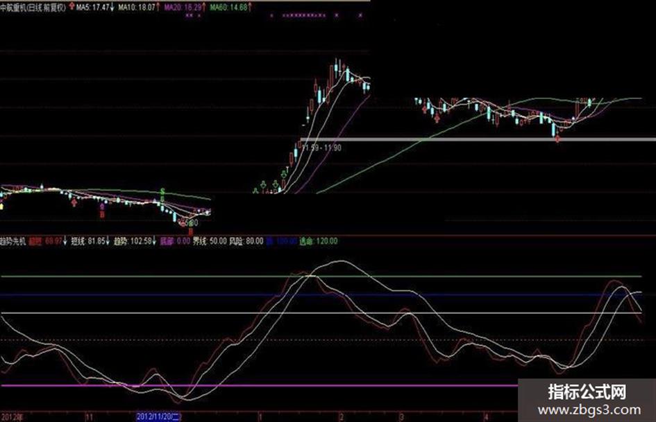 多头排列,确立行情。上传界限,进入主升。超短下拐,短线出局。界限附近反弹,二次行情