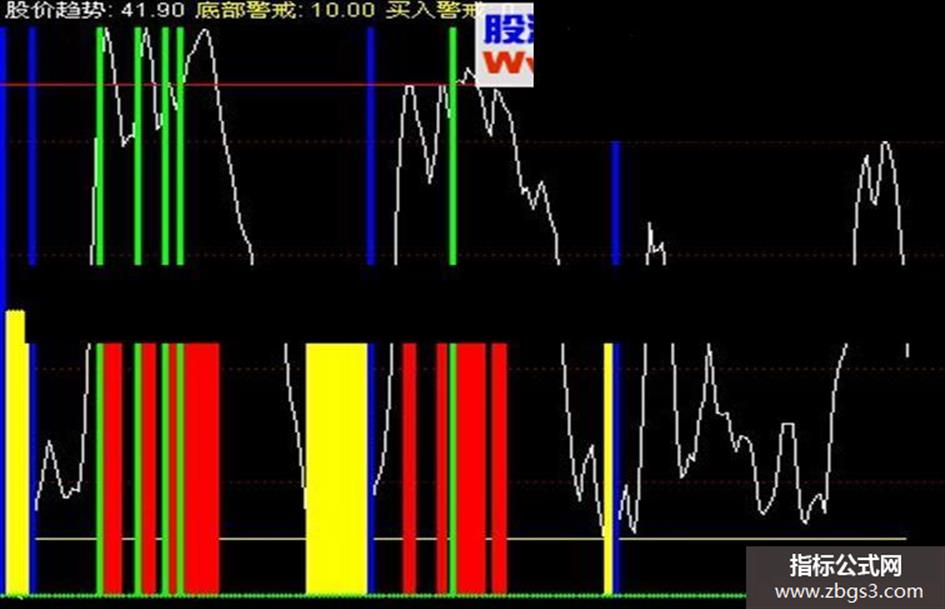 买入警戒: IF(股价趋势<=10,50,0),stick,linethick3,coloryellow;