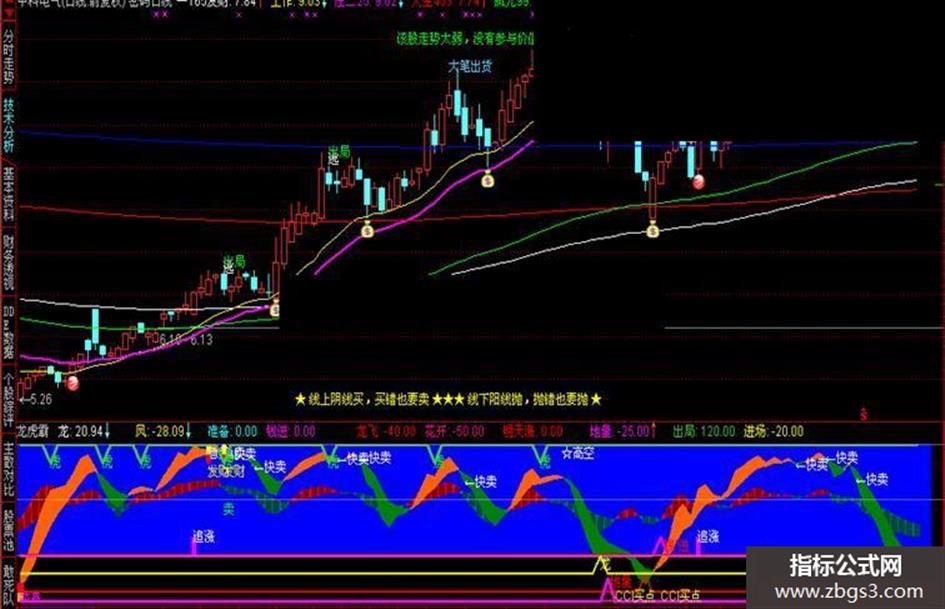 {DRAWTEXT(WZ=1,50,'【选准股票,认定指标,信号出现,坚决执行,波段操作,必有收益】'),COLORYELLOW;}