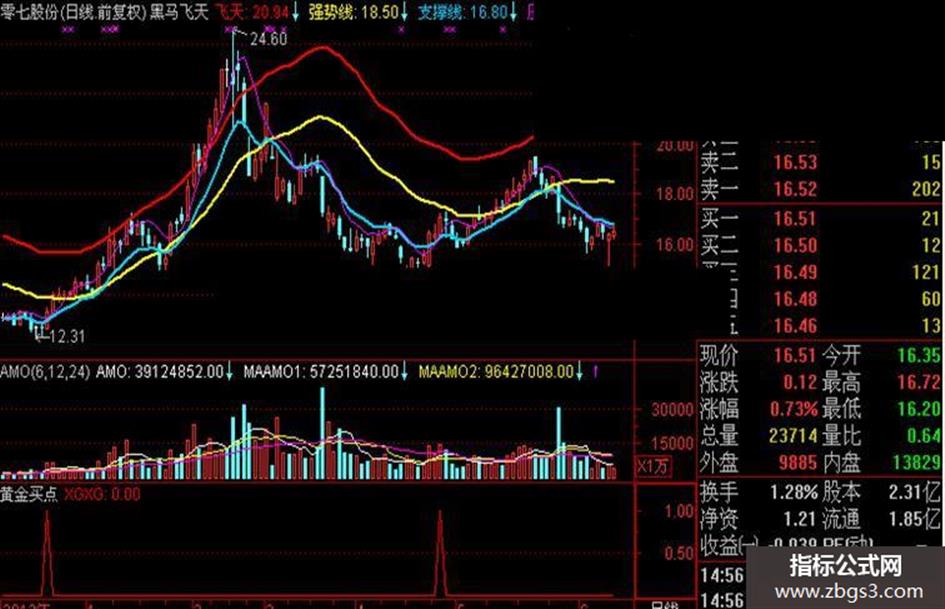 支撑线:(MA(CLOSE,3)+MA(CLOSE,6)+MA(CLOSE,12)+MA(CLOSE,24))/4,COLORFFCC00,LINETHICK2;