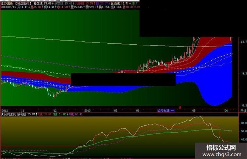 本指标含有获利比例函数,如有不喜欢此函数的朋友请绕行。虽然含有获利比例函数,但是,此指标对于描述起涨点,扑捉主升,识别洗盘,以及逃顶是有帮助的,尤其是要关注白红绿三线的多头排列即白红线要在绿线之上。源码为通达信