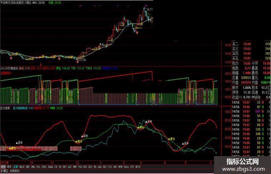 买入:DRAWTEXT(CROSS(趋势线,判断),趋势线+10,'▲买牛'),LINETHICK2,COLORWHITE;