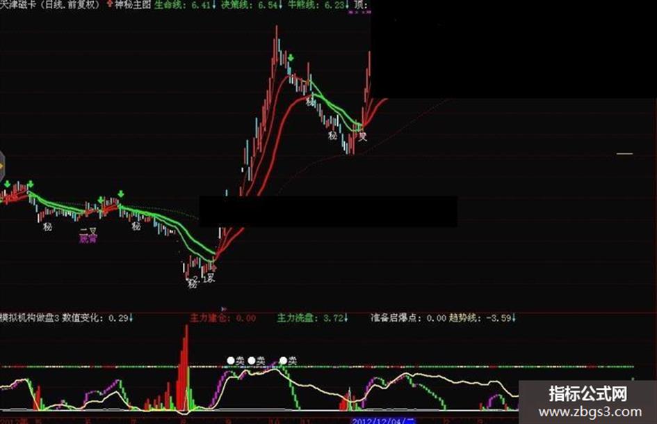 决策线:REF(EMA((LOW+CLOSE+OPEN)/3,25),1)LINETHICK3,COLORGREEN;