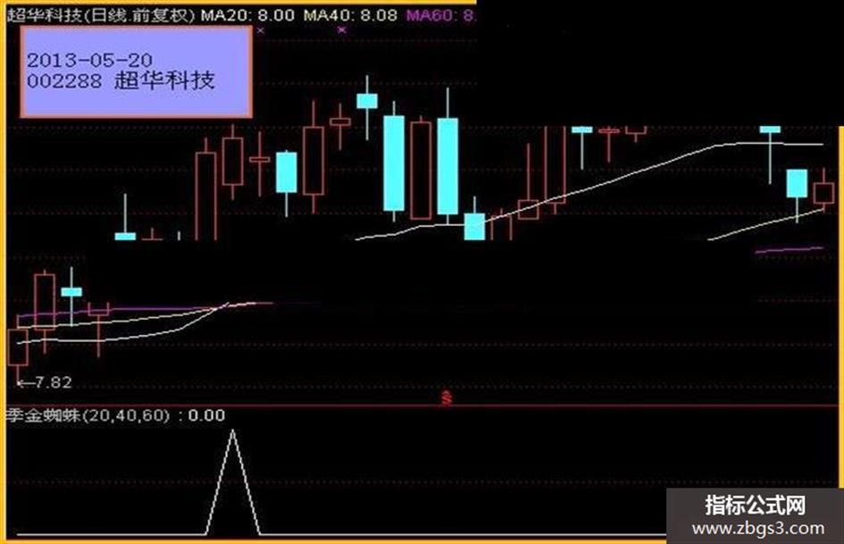 要求:20,,40, 60日均线向上交叉于一点的金蜘蛛